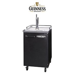 Achieve a whole new kind of awesome with this complete Guinness keg fridge system. Almost everything you need to enjoy the perfect pint of your favorite stout at home is included, all you'll need to provide is the air tank and the beer. If your tastes change, that's not a problem. This system can be converted to dispense any other brand of beer and it's easy. Any beer can be dispensed with the mixed gas, the head will simply have tighter bubbles. Depending upon the brand of beer, you will most likely have to change the keg coupler and you should also change the faucet head back to the standard chrome version (included). Before you order you'll want to call your local gas dealer(s) and ask about the availability of the mixed gas you'll need (75% Nitrogen, 25% CO2). Check online or in your local yellow pages under the heading "Gas" for a vendor near you. Here's what to ask when you call. Features: Black Beverage Air BM-23 Keg Refrigerator. Outfitted especially for Guinness. . Specs: Beverage Air BM23 Keg Refrigerator Spec Sheet. Dimensions: 24"W x 37 1/2"H x 28 1/2"D. Net Capacity: 7.8 Cu Ft. Unit will hold and dispense (1) 1/2 keg, (1) 1/4 keg or (1) 5 gallon keg. Guinness is ONLY available in 1/2 kegs in the United States. Shipping: Ships within 3 business days. Curbside delivery: Someone must be present to receive and unload product. Freight truck lift gate service available for an extra fee. Four year warranty on compressor. One year on parts direct through Beverage Air (service line: 1-800-684-1199). Warranty valid only in the continental United States. Includes: (1) Chrome stout faucet (No Guinness logos on it). (1) Regular chrome faucet head to dispense beers other than Guinness. (1) Guinness keg coupler. (1) Double gauge nitrogen regulator. (1) Air line jumper for the regulator. (1) Nitrogen regulator to CO2 air tank adapter. (1) Economy Beer Line Cleaning Kit. (1) Refrigerator Thermometer. (1) Instruction manual.